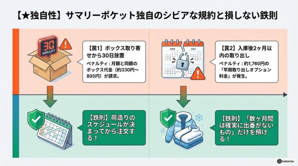 具体的には「ボックスの放置」と「短期での取り出し」に関するペナルティです。しかし、事前にルールを把握し、預ける期間を明確にしておけば、無駄な出費を未然に防ぎ、お得に利用することができます。