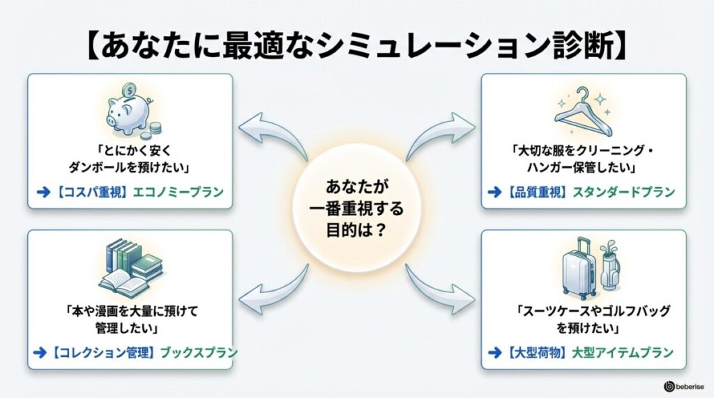ですが、次の季節まで使わない衣替えの服や、年に数回しか出番がない行事の道具などを長期間まとめて保管したい人にとっては、コスパ最強の最適なプランです。